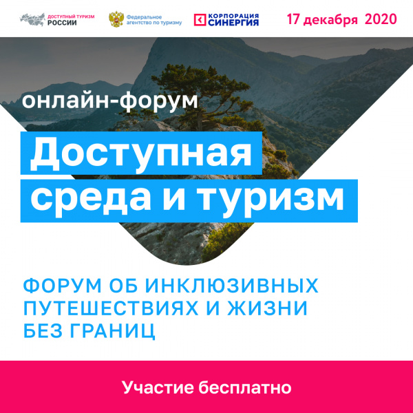17 декабря состоится онлайн-форум «Доступная среда и туризм». Форум станет уникальной дискуссионной площадкой, где представители государства, общественных организаций, волонтерского движения и социального предпринимательства обсудят самые актуальные вопросы инклюзивной сферы. Кроме того, участники узнают о самых интересных маршрутах доступного туризма, а также познакомятся с опытом реализации интерактивных проектов, аккумулирующих объекты доступной инфраструктуры. Организатором мероприятия являются Федеральное агентство по туризму (Ростуризм) и Корпорация «Синергия».