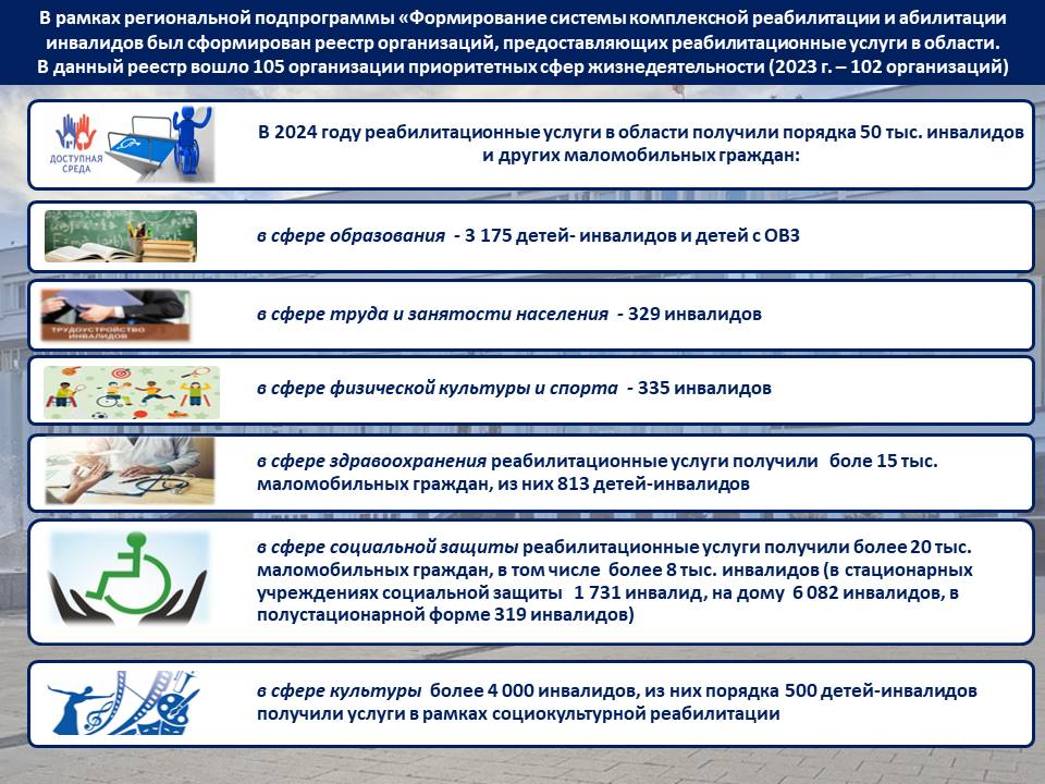 В данном разделе размещена инфографика о ходе реализации государственной программы Российской Федерации «Доступная среда» в субъектах РФ.