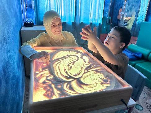 В реабилитационном центре для детей с ограниченными возможностями здоровья города Хасавюрт (Республики Дагестан) проводятся занятия по песочной терапии. Специалист по работе с семьей Залина Меджидова погрузила детей в волшебный мир песочной анимации, организовав индивидуальное занятие на световом арт-столе.