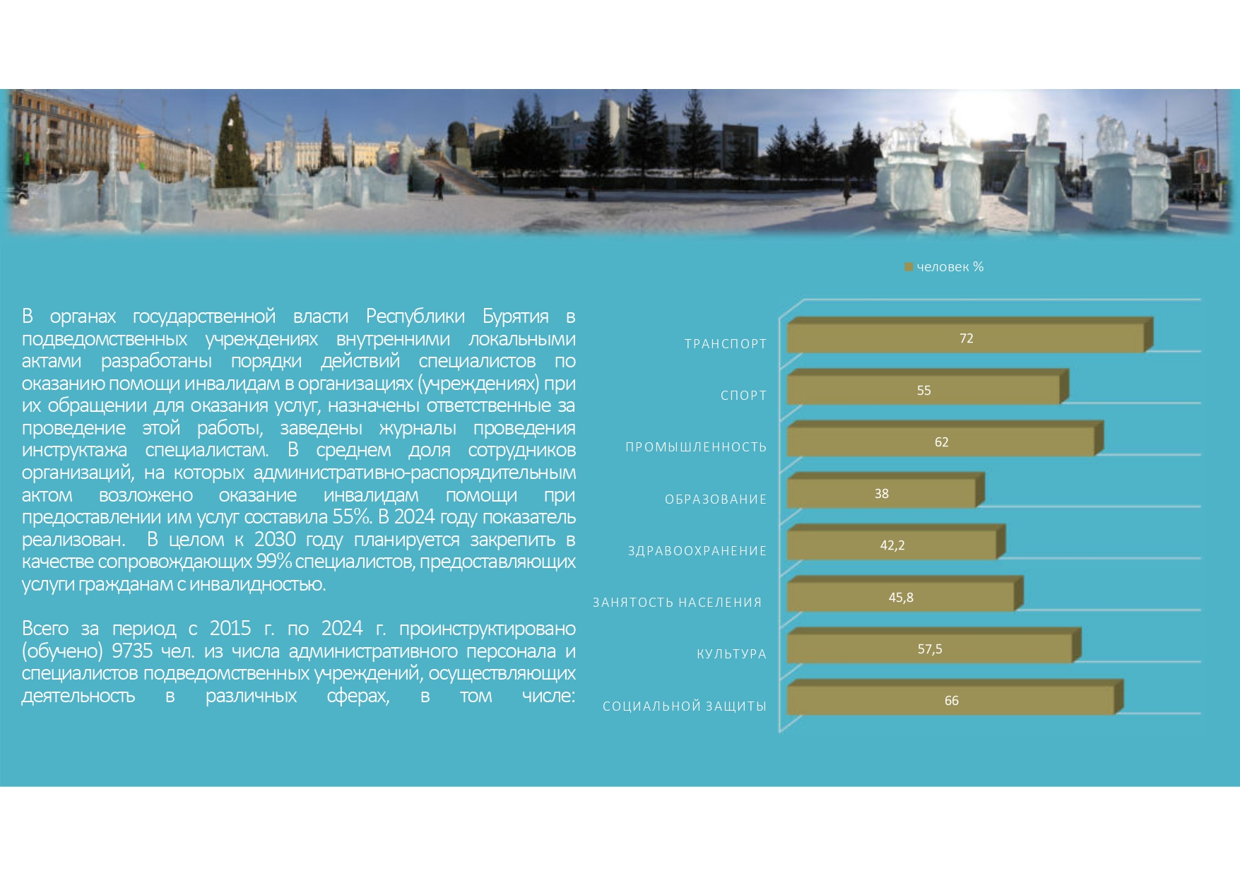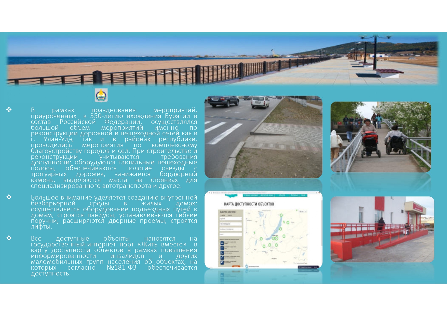 В данном разделе размещена инфографика о ходе реализации государственной программы Российской Федерации «Доступная среда» в субъектах РФ.