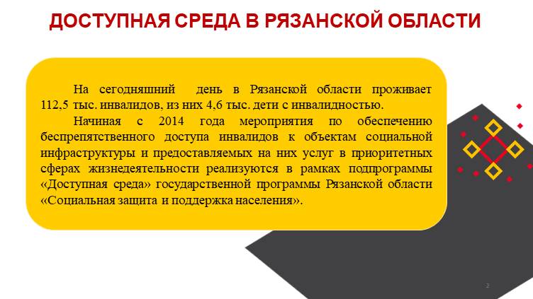 В данном разделе размещена инфографика о ходе реализации государственной программы Российской Федерации «Доступная среда» в субъектах РФ.