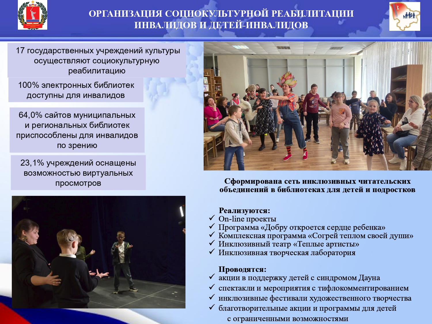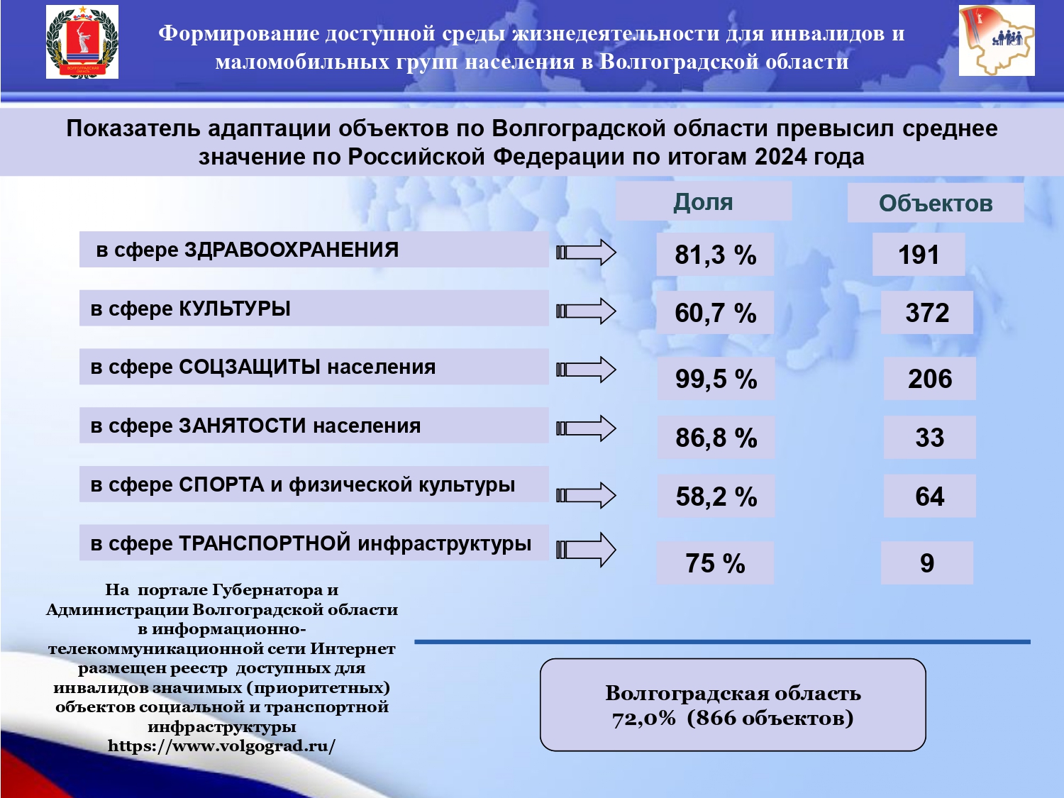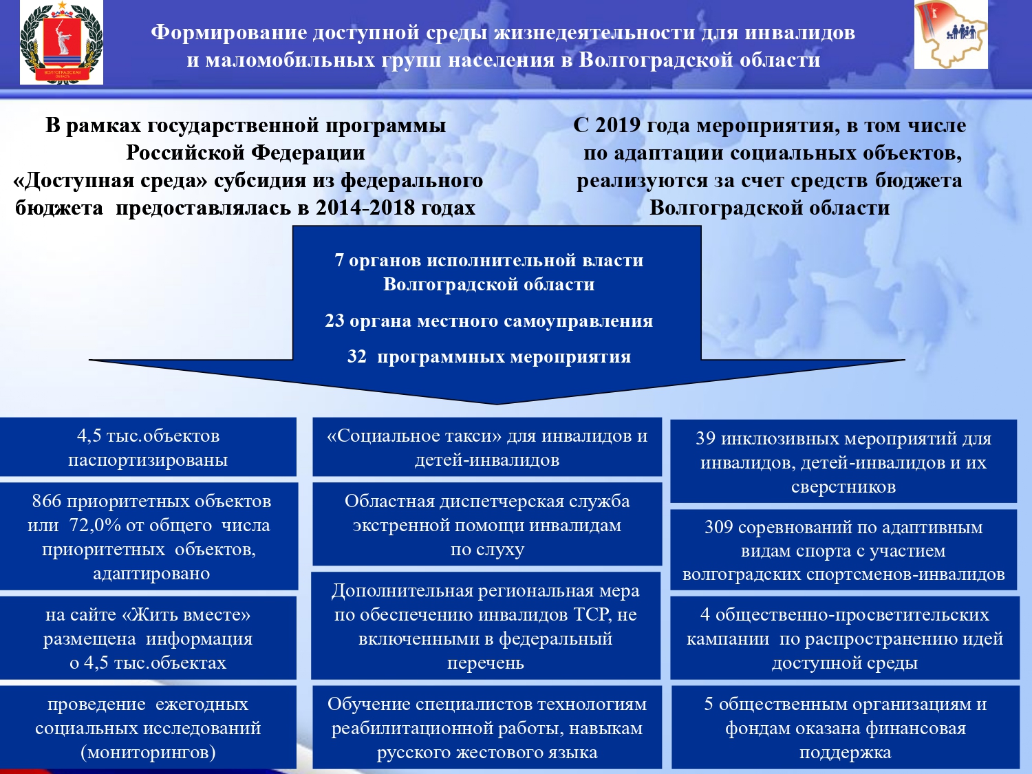 В данном разделе размещена инфографика о ходе реализации государственной программы Российской Федерации «Доступная среда» в субъектах РФ.